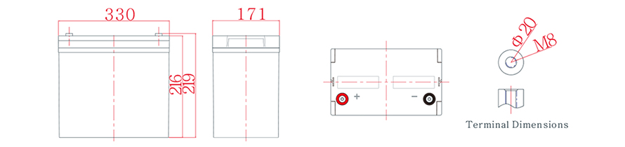 الأبعاد: 330 (L) × 171 (ث) × 216 (ح) x 219 (TH) الوحدة: مم