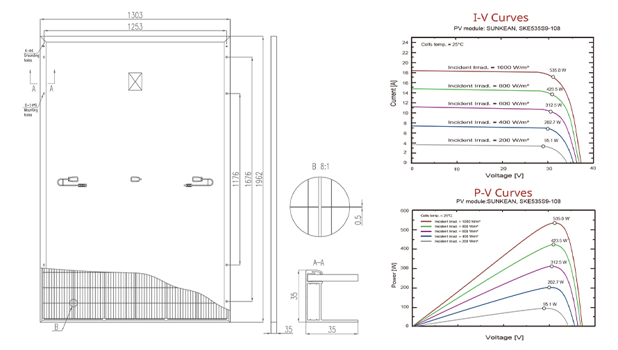 | أقصى جهد للنظام | 1500 فولت تيار مستمر | |||||