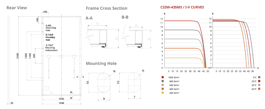 * تحت درجة حرارة تشغيل الوحدة الاسمية (NMOT) ، إشعاع 800 واط / م 2 ، الطيف AM 1.5 ، درجة الحرارة المحيطة 20 درجة مئوية ، سرعة الرياح 1 م / ث.