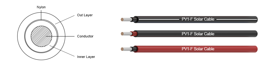 يتكون الكبل الشمسي PV1-F من هيكل عازل ثلاثي الطبقات من البولي أوليفين المتقاطع المتصل بالإشعاع , من النايلون والبولي أوليفين المتقاطع المتصل بالإشعاع , والذي يقاوم النمل الأبيض والقوارض . في أنظمة توليد الطاقة الكهروضوئية , يمكن استخدامها في الهواء الطلق تحت أشعة الشمس أو دفنها مباشرة في الأرض .