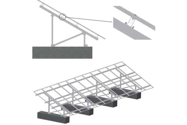 عند تركيب وحدات الألواح الشمسية على سطح خرساني مسطح، إذا كان الصف الواحد من وحدات الألواح الشمسية طويلًا، فيمكن تركيبها أفقيًا من خلال البدء من المركز والعمل في طريقها إلى الجوانب.
