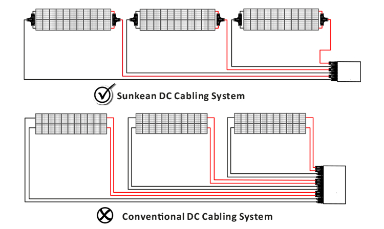 بفضل أحزمة الكابلات المجمعة مسبقًا ، والتي يتم إنتاجها تلقائيًا جزئيًا ، ويتم تسليمها جاهزة للتركيب. يمكنك تقليل العمل اليدوي في الموقع ، وتجنب أخطاء التثبيت والأعطال ، وبالتالي ضمان أفضل كفاءة ممكنة للنظام الكهروضوئي.