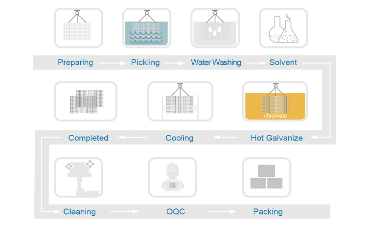 من أفضل الطرق لمنع التآكل الجلفنة بالغمس الساخن. يعتبر طلاء الزنك فعالًا جدًا في حماية الأسوار لأن الطبقة الواقية من الزنك تتآكل ببطء شديد.