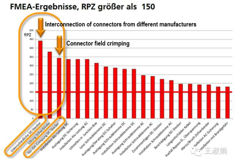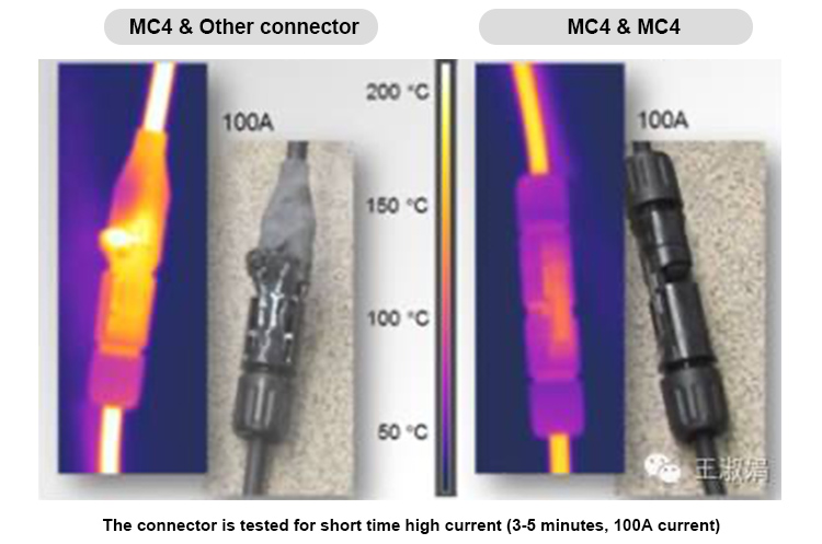 وجد تحقيق مشترك من قبل fraunhofer ISE و TUV احتمالًا كبيرًا للحرائق التي تسببها الموصلات . والسبب الأساسي لحريق الموصل هو أن مقاومة الموصل تزداد في ظل حالة تدفق التيار , مما يزيد من درجة الحرارة يرتفع ويتجاوز نطاق درجة الحرارة التي يمكن أن تتحملها الغلاف البلاستيكي والأجزاء المعدنية , مما يتسبب في نشوب حريق . وبالتالي , يكون فشل الموصل وسبب الحريق نتيجة للعمل المشترك للبلاستيك قذيفة والأجزاء المعدنية .
