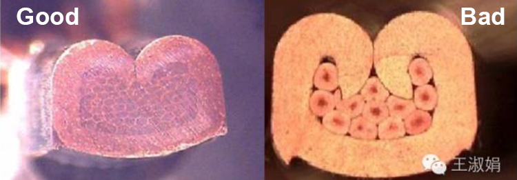 ترتبط مقاومة العقص RCR بشكل أساسي بجودة العقص وعملية العقص . يتطلب التجعيد الجيد مظهرًا محكمًا بدون فجوات وشكل منتظم .