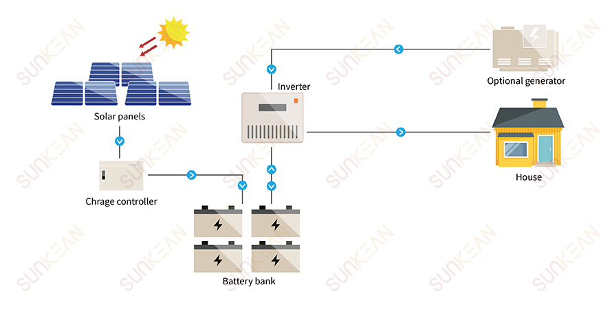بالطبع , إذا اخترت نظامًا شمسيًا غير مرتبط بالشبكة الكهربائية ولم يكن لديك مولد كهربائي , فإن نظام الإمداد بالطاقة سيكون مزودًا بالكهرباء فقط عندما تكون الشمس مشرقة والنظام الشمسي ينتج الكهرباء أو الرسم من جهاز تخزين شمسي (مثل البطارية) تم إنتاجه مسبقًا بواسطة النظام الشمسي .