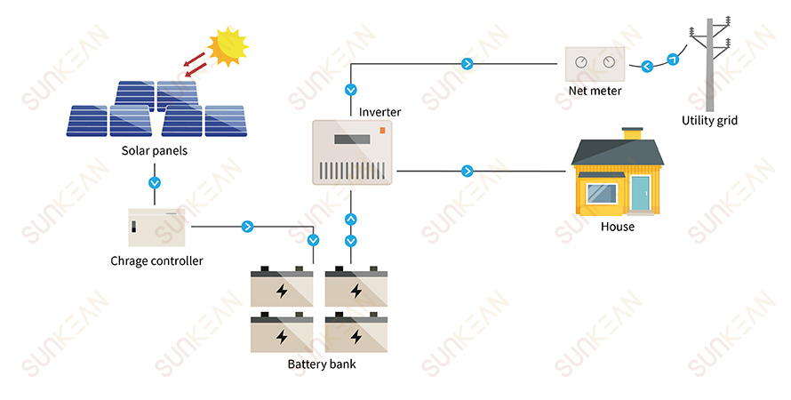 3 . هجين —— تخزين الطاقة الشمسية بالإضافة إلى البطارية مع توصيل الشبكة