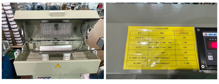 بالنسبة للنموذج الشهير H1Z2Z2-K / 1 ~ 35mm2 ، فإن جهد الاختبار هو 10KV. يتم تطبيق الفولتية المختلفة لاختبار الشرر والتي يتم تحديدها من خلال مساحة المقطع العرضي للموصل ومواد العزل ، مع الجهد المناسب المحدد في معيار الكابل ذي الصلة.