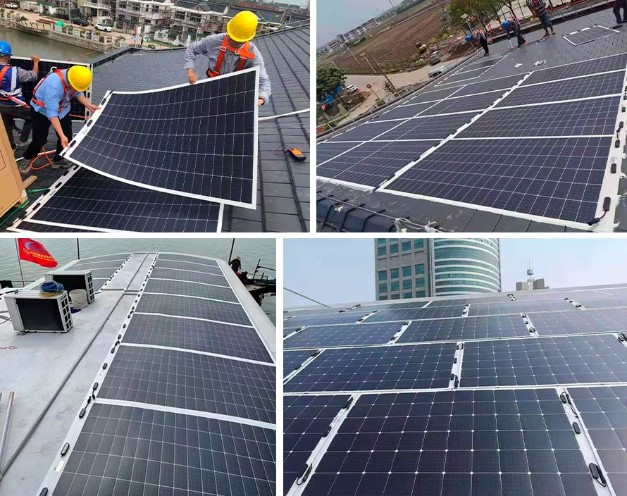 تعتمد اللوحة الشمسية المرنة بقدرة 375 وات تصميمًا خفيفًا ورقيقًا. رقائق سيليكون رفيعة للغاية مع مواد تغليف بوليمر عضوي متقدمة، يصل الحد الأدنى لنصف قطر الانحناء إلى 0.30 مم، وتناسب جميع أنواع الأسطح المنحنية بشكل مثالي.