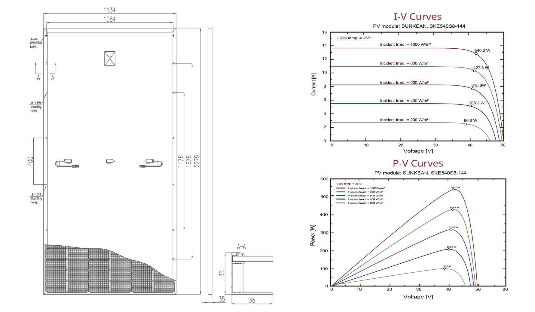 | أقصى جهد للنظام | 1500 فولت تيار مستمر | ||||