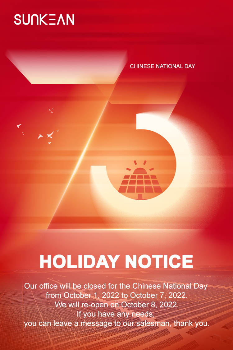 في الصين ، سيحتفل الناس بالعيد الوطني. وفقًا لترتيب الإنتاج ، وضعت شركتنا خطة عطلة لهذه العطلة القادمة: 1 أكتوبر - 7 أكتوبر. خلال هذا الوقت ، سيتم إغلاق مكتبنا. استئناف العمل العادي من 8 أكتوبر.
