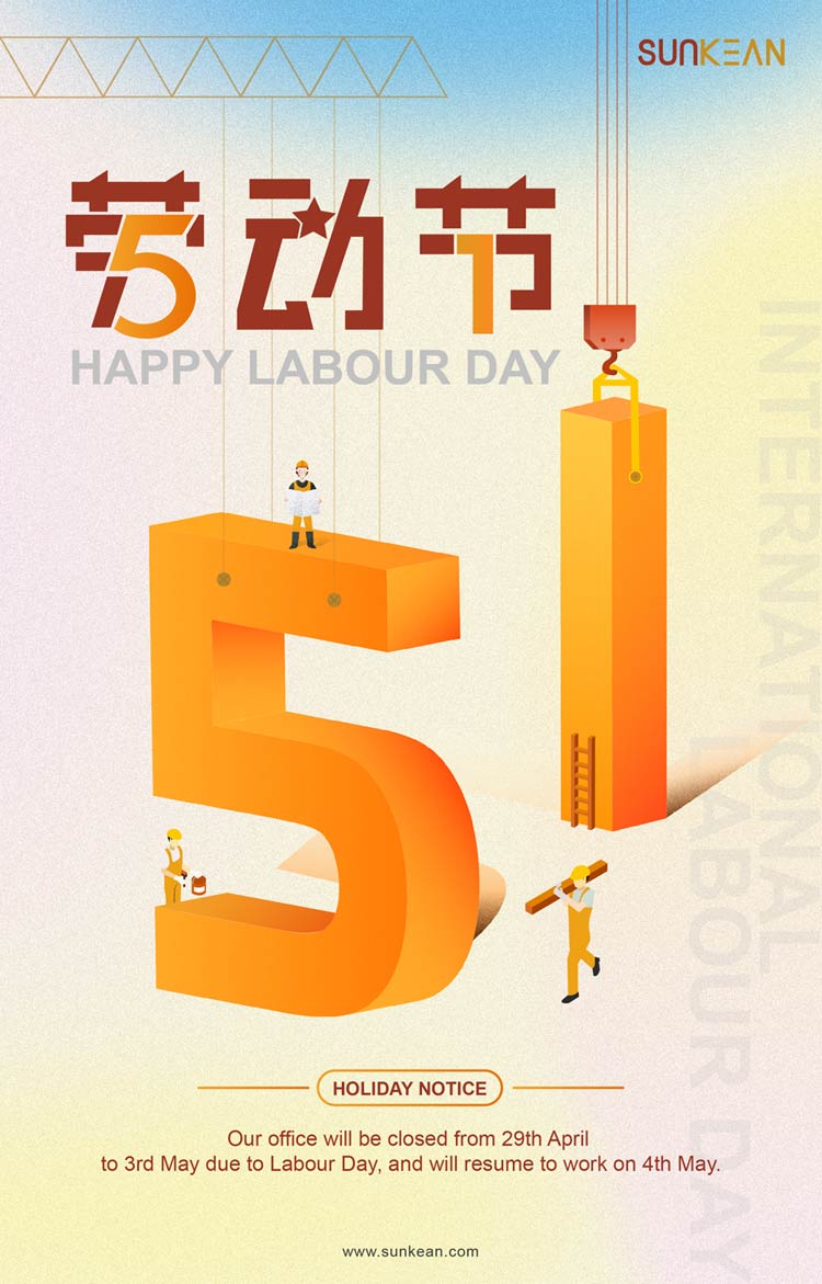 وفقًا لإشعار العطلة الحكومية والوضع الفعلي لشركتنا , سيتم إغلاق مكتبنا من 29 أبريل إلى 3 مايو بسبب عيد العمال وسيستأنف العمل في 4 مايو .
