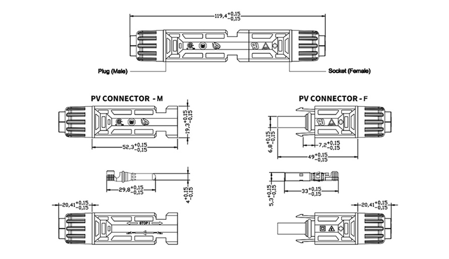 ال PV الموصل مناسب للكابلات الشمسية 2.5 مم 2 و 4 مم 2و 6 مم 2 في اتصال الطاقة الشمسية مشروع , بسرعة وتوصيل موثوق للكابلات الشمسية بالمنظومة الكهروضوئية (الألواح الشمسية المحولات).
