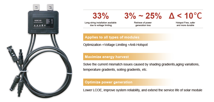 ⚫ تحسين توليد الطاقة , انخفاض LCOE , تحسين موثوقية النظام الشمسي , إطالة عمر خدمة الوحدة .