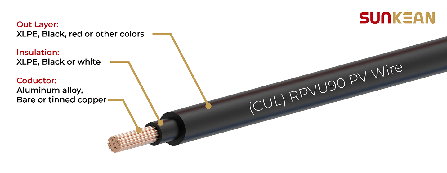 سلك RPVU90 2kV PV 2AWG مع طبقة مزدوجة من النحاس